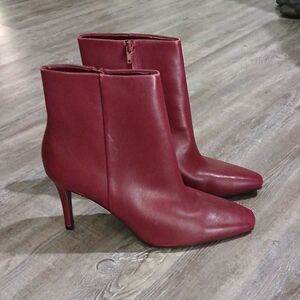 Nine West Sissa Dark Red (WIne) Leather Pointed Toe High Heel Ankle Boots Sz 11