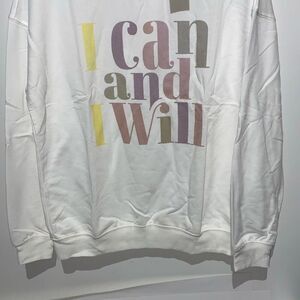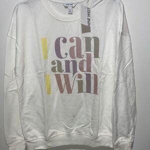 Nine West Sweatshirt Women's Small White Fleece I Can And I Will Pullover NWT