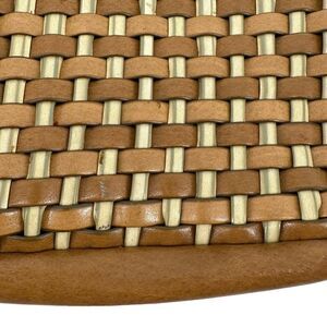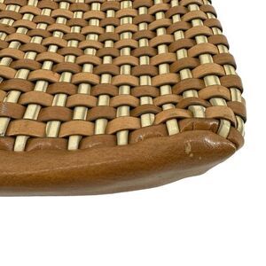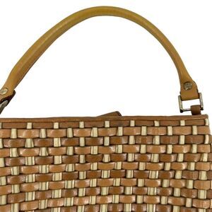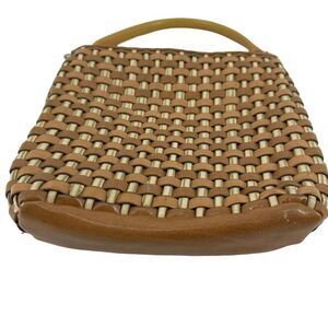 Nine West Vintage Handbag Basket Woven Vegan Leather Brown Top Handle Small Boho Bohemian Snap Closure With Inner Zip Pockets