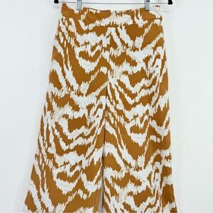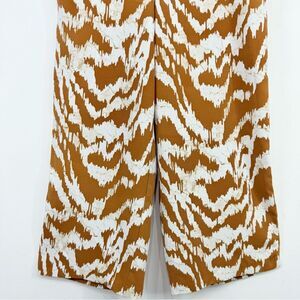 Nine West White Rust Orange Watercolor Abstract Zebra Print Crop Wide Leg Pants