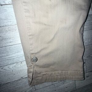 Khaki Bermuda shorts are in excellent condition. Cute button details on the bottom of legs with fun design on back pockets. comes from smoke free home.