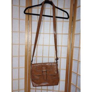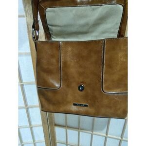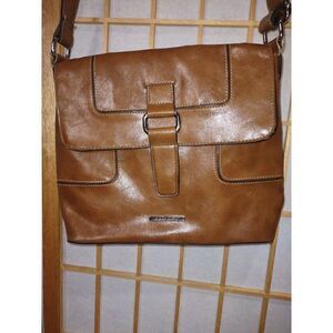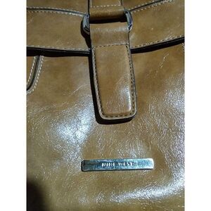 Classic brown leather shoulder bag from Nine West. Magnetic closure. Interior two pouches and one zipper pocket. Adjustable strap. Some marks on interior. Nonsmoking home.