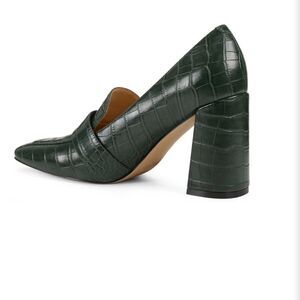 NWOT black with gold Nine West Urila Heeled Loafers in a size 10M. Please note that the shoes are black and the green shoe is for a better view.