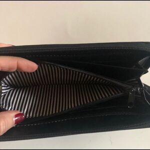 Good used condition Nine West wallet. Interior has some cracking. See pictures. Roughly 7.5” length and 4” height.