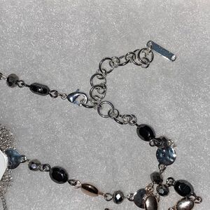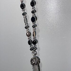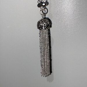 Nine West Women's Beaded Tassel Silver Necklace Choker NWT