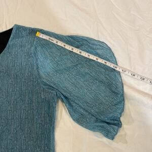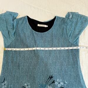 This blue blouse showcases flutter sleeves and a relaxed, boxy silhouette, perfect for effortless style. The soft fabric ensures comfort and ease of movement, making it a versatile wardrobe staple.