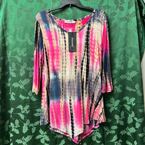 Ninedaily Tie Dye Tunic Top 3/4 Sleeve Handkerchief Hem New With Tags - Size Lg