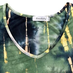 Ninedaily Top Women Size XXL Green Yellow Rayon Stretch Asymetric Boho Artsy Tunic
