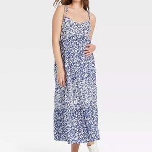 Nines by Hatch Floral Maternity Midi Sundress Dress Small Navy Blue White Cotton