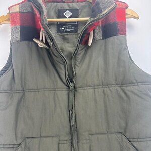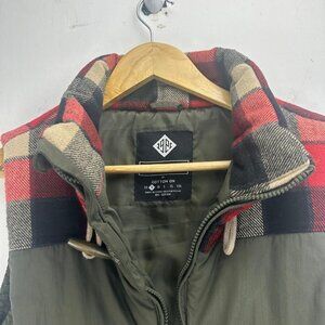 Nineteen Ninety One Vest Mens M Olive/plaid Polyester Hooded Full Zip Pockets
