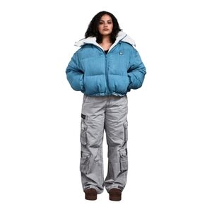 - Reversible and Convertible:** Utilize this jacket with it's Vintage Denim, or reverse it to our Signature Classic White Sherpa while still maintaining our patented convertible design with a Removable Hood that converts into a Cross-Body Bag, Clutch, or Small Pillow giving you multiple options for any occasion.