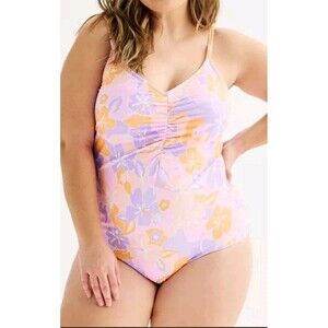 Ninety Nine One Piece Swimsuit Size 1X Purple Floral Print Ruched Resort Pool