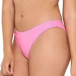 Ninety-Nine Degrees Juniors Shirred Bralette + High Leg V-Waist Cheeky Bikini Bottom Swim Set in Baby Pink Shine Textured - they're a size Medium and are new, never worn or opened. These are really shiny, pics don't show how shiny they are, so cute!