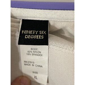 Stylish Ninety Six Degrees purple bikini with size L bottom and size XL top. Features a removable halter tie for versatile looks and comfort.