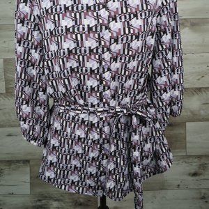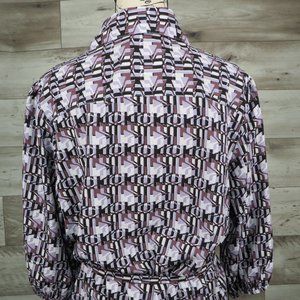 Pre-Owned, Excellent Condition! 97% Polyester/3% Spandex. Beautiful Fuchsia, Black, White Colored Blouse, Soft to the Touch!