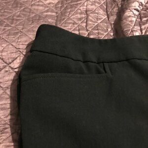 Ninety woman size 20W black ankle length pants with crystal button embellishments at ankles. Zipper with button and 2 strong metal closures to secure waist. Has stretch but appears like regular trouser type pants. 63% polyester, 33% rayon, 4% spandex. Never worn, new condition. Midweight fabric so pants are great for all seasons. Straight line pockets, with nice tailoring. Great go to item with any top.