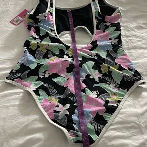 Ninety-Nine 1 piece Swimsuit NWT Size XL Midnight tropics Cut outs Length 22.5 Hip width 18.5