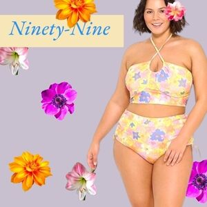 Ninety-Nine Degrees Bandeau Bikini Junior Plus 3X Waikiki Print Halter Crop NWT