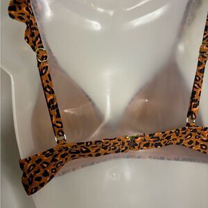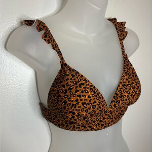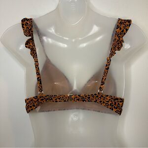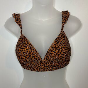 Ninety-Nine Degrees° Cheetah Print Ruffle Midkini Swim Top Size Medium