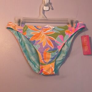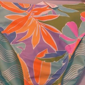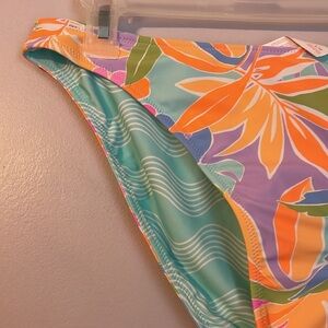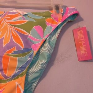 Ninety-Nine° Reversible Island Paradise High Leg V-Waist Cheeky Swim Bottoms size L. New with tags! Cheeky coverage. Mid rise. High leg. Fun retro looking print. See pictures for approximate measurements.
