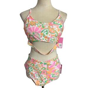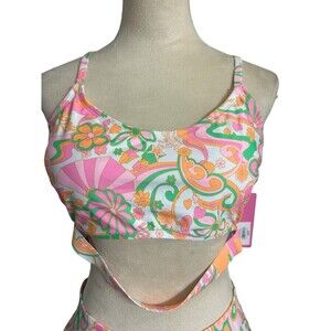 Ninety-Nine Swimsuit 690 Elect Vibe 2 pcs Floral Cut Out Bralette Plus 1X NWT