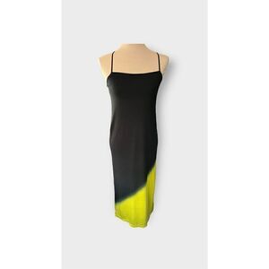 Ninety 2Percent tencel jersey cross back dip-dye slip dress size XS black & acid.