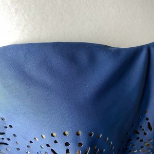Ninety Six Degrees Strapless Flounce Eyelet Bikini Top Gold Metallic Large Blue