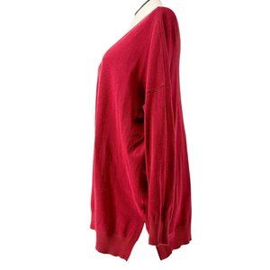 Ninexis Sweater Womens 3X Deep Red V-neck Drop Shoulder 3/4 Sleeve Side Slits