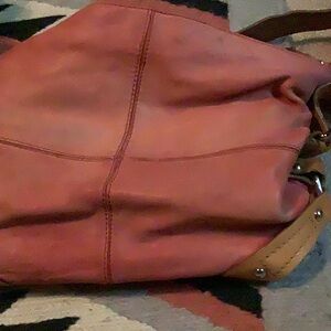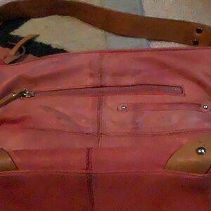 Nino BOSSI Coral and Tan Leather Shoulder Bag