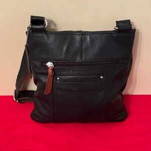 Keep your must-haves close when you sling this chic crossbody bag over your shoulder. Multiple pockets inside and out provide a secure place for the essentials while soft leather and a fold-over flap deliver streamlined style. Front flap is secured by a mag snap and a convenient slip pocket is located on the front panel. The back exterior features a full zipper pocket You will also find a back slip pocket for easy access to your cell phone. The interior features a zipper compartment. Two slip pocket compartment on the interior of the handbag for additional storage. Signature floral lining. The dimensions for this bag are 10.5” L x 1.5” W x 11”H with an adjustable shoulder strap drop of 25”.