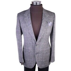 Nino Cerruti Paris Blazer Men 40R Gray Windowpane Gray Sport Coat Jacket 2-Buttn