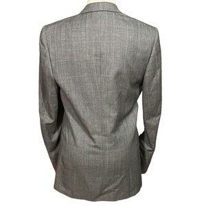 Elevate your formal wear with this stylish Nino Cerruti Rue Royale Sports Coat in size 40R. The grey patterned coat features a notch lapel style and a ventless jacket vent style, giving it a classic and preppy theme. The two-button single-breasted front button style and three-button jacket sleeve button style make this a perfect fit for any occasion, whether it be for business, a wedding, or a party. The coat also includes inner pockets for additional functionality, and the dry clean only garment care ensures its longevity.