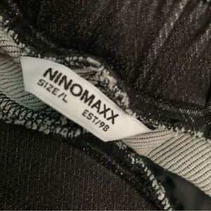 Cute washed black denim shorts w/black & white strip on each side. Pull on. Elastic waistband. High waist. Side front pockets. Envelope back pockets. Cotton/spandex. In excellent used condition. Ninomaxx Size Large