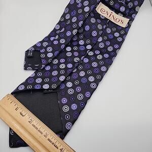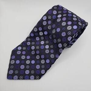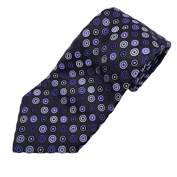 Nino's London Silk Necktie Black w/Purple Circles Hvy Wt - Italy - Like New