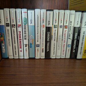 Includes Nintendo 3DS XL, an old case, charger, stylus, and 15 games. Games included: The Legend of Zelda: Ocarina of Time 3D The Legend of Zelda: Majora's Mask 3D The Legend of Zelda: A Link Between Worlds Super Mario 64DS Luigi's Mansion: Dark Moon Super Smash Bros 3DS Pokemon Y Metal Gear Solid Snake Eater 3D Monster Hunter Generations Fire Emblem Awakening Chrono Trigger Final Fantasy IV Bravely Default Super Scribble Nauts The World Ends With You Works great still, checked the games recently. The case is ratty but it still works fine.