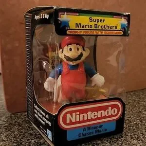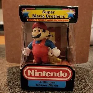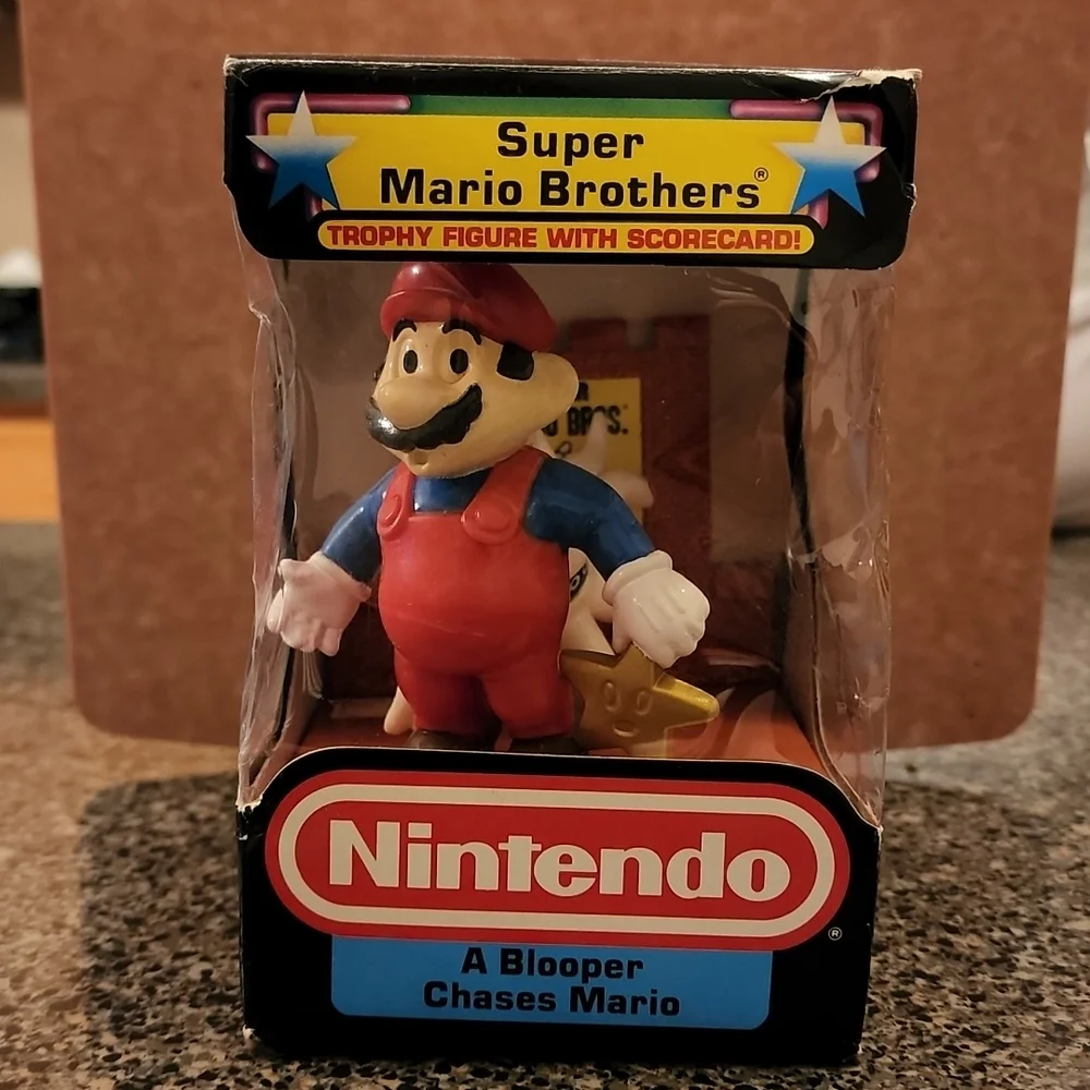 Nerds only! 1988 Check Ebay before buying! A Blooper chases Mario. There's no princess or Mushrooms to headbutt just a collectable.
