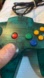 Aqua Nintendo 64 gaming console. Iconic design.