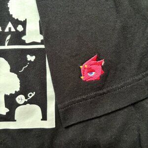 Show off your love of bug catching with this comical tee! The left sleeve carries a little embroidered Flick face.