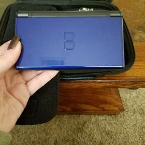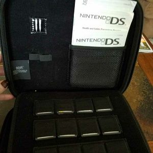 Nintendo DS with hard case, 25 games, hard case, 2 chargers, instruction booklet, screen protector and cleaning cloth. Great condition.
