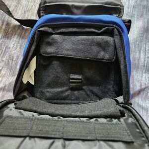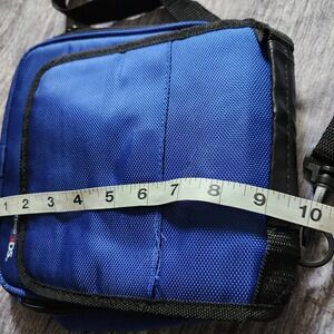 Keywords: Nintendo DS bag, messenger bag, crossbody bag, shoulder bag, game console case, travel bag, Nintendo accessory, blue bag, carrying case, gaming bag, portable game case, DS console bag, video game bag, nylon bag, organizer bag