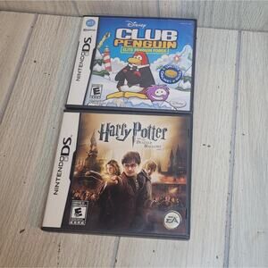 Enjoy a Nintendo DS game bundle featuring Club Penguin: Elite Penguin Force and Harry Potter and the Deathly Hallows. Perfect for fans of adventure and magic.