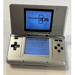 Nintendo DS NTR-001, Titanium Silver, Handheld Console Gaming System . Includes All Paperwork, Tested & Works Great, Crack on Hinge - See photos, cracks do not affect the performance!