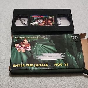 Nintendo box featuring Donkey Kong. Green jungle theme with bold black text.