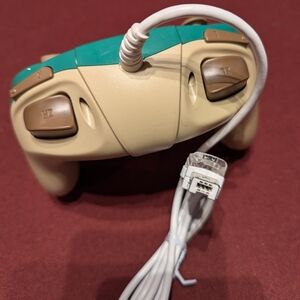 Experience gaming nostalgia with the Nintendo Green GameCube Style Controller, crafted for the Wii. Its ergonomic design and vibrant green hue offer comfort and style, while the iconic Zelda Triforce symbol adds a unique touch. Enjoy precise control with its classic button layout and dual analog sticks.