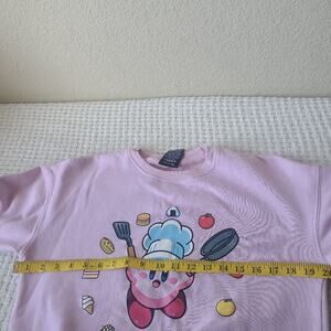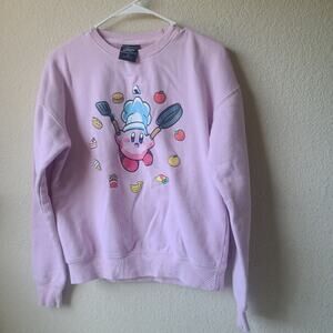 Nintendo Kirby Chef Crewneck - BoxLunch Exclusive Women's Size XS. Preowned. Minor wear. Minor Wash wear. "Chef Kirby's serving up more than just delicious food on the front of this crewneck! Nintendo's heroic and adorable pink puffball appears on the front of this sweater, surrounded by rice balls, cake, and more of his favorite dishes to cook. A tasty and cute look, fans can enjoy a new delectable outfit whenever Chef Kirby's in the kitchen and on this sweater. Good looks and good times? Served! A BoxLunch Exclusive! 60% cotton; 40% polyester." Measurements Included In Pictures. Good Condition. Smoke Free Home. Offers Welcome.