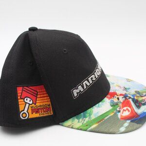 Nintendo Mario Kart raised lettering All Over Patch Black Snapback Youth Hat EUC