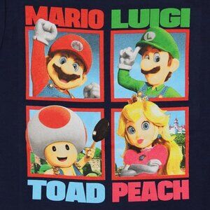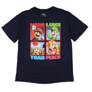 Nintendo Mario, Luigi, Toad & Princess Peach Navy Blue Graphic Tee Medium Boys