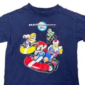 Nintendo MarioKart Wii 2008 Video Game Tee T-Shirt Navy Blue Youth M Medium
