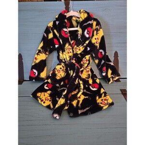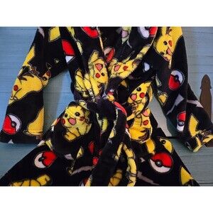 Nintendo Pokémon Pikachu Black Yellow Plush Fleece Bath Robe Pajamas Size 4 Boys