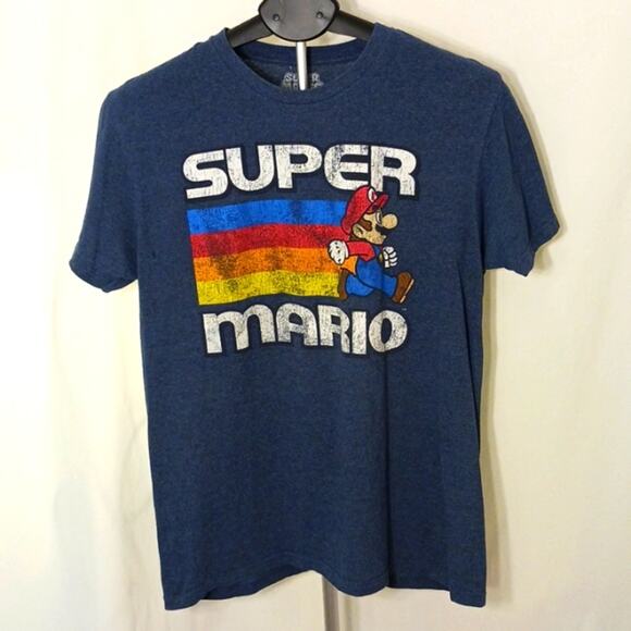 Nintendo SUPER MARIO T-Shirt Men's Sz M BLUE Short Sleeve Unisex Gaming Retro